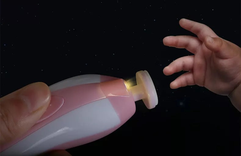 - Product DescriptionSAFE & EFFECTIVE: A safer baby nail file thatwon't damage cuticles or soft nail beds, you can safely & quickly trim andpolish little toenails and fingernails. QUIET OPERATION – Boasting an LED frontlight and whisper-quiet motor, you can trim their nails while they're sleepingwithout them ever knowing.MULTIFUNCTION: These baby nail clippers come with 3cushioned sandpapers safe for babies and children, as well as 3 attachments foradult use.MULTIPLE SETTINGS: Control speed (high/low) androtation (clockwise/reverse) for enhancing nail filing positions and softer,smoother nails.Material: ABS Size: 132 x 43 x 32 mm/5.20 x 1.69 x 1.26-inchPower: 2 AA battery (not included) Package: 1 x Baby Nail File Set